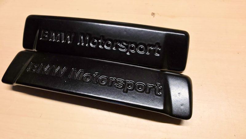 Set van 2 OEM deurgrepen met "BMW Motorsport" gravering. Zijn opnieuw gespoten, maar hebben enkele oneffenheden.